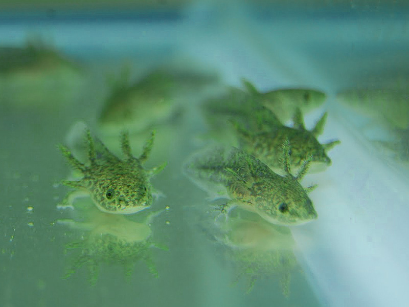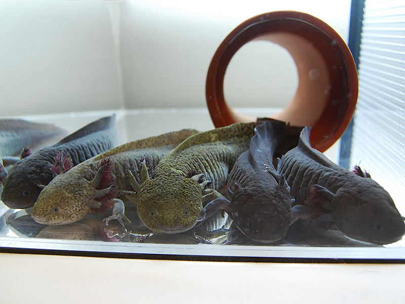 成長して成体となったアホロートルの大きさがイメージできる大きさの水槽と、水質の安定が前提になりますが、アホロートルは社交的での複数飼育は単独飼育よりも楽しいです。縄張り意識は強くないですが、仲間同士の攻撃や食いつきにも注意が必要なので大きさがあまりに違う場合は避けましょう。また、アホロートルは肉食動物なので他の魚や生物との共存は避けましょう。