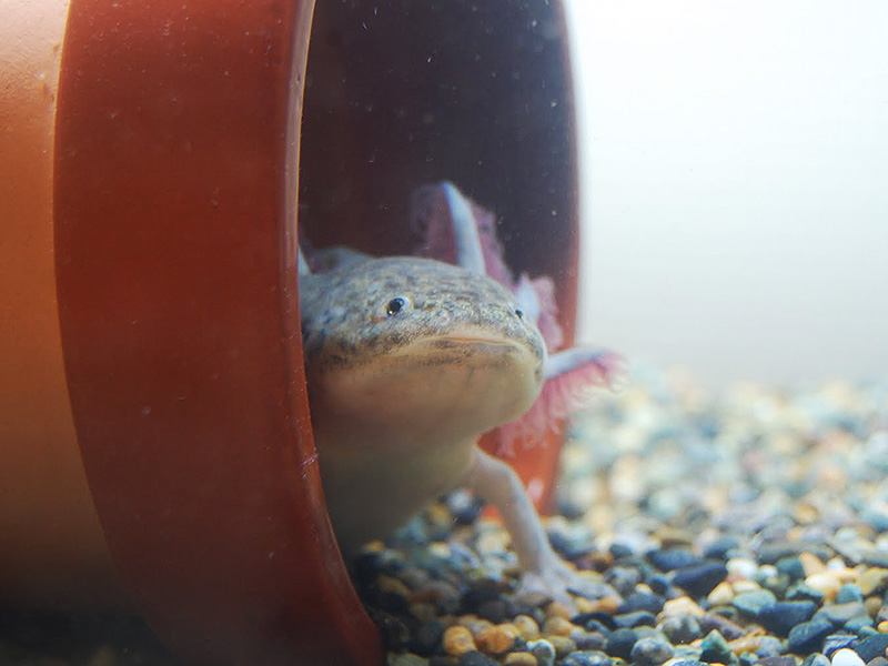 また、アホロートルはエサを飲み込む際に、口の周りの物を吸引するように食べる、小石や砂利を一緒に口に入れます。もちろん吐き出しはしますが、それでもかなりの量を飲んでしまうことがあります。そのため飲み込んでも問題なく排泄されるよう、使う石や砂利や装飾品はアホロートルがけがをしないように滑らかなものを選びましょう。
