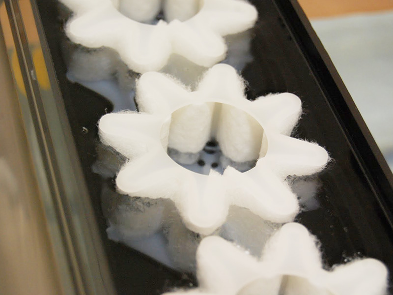 ろ過器の中にあるスポンジの表面積はとても大きく、そこに定着した有益なバクテリア(水が媒介するゴミを分解するバクテリア)は、塩素で処理された(水道)水で洗われたり、洗剤を使ってしまうと全滅する場合があるのでご注意ください。